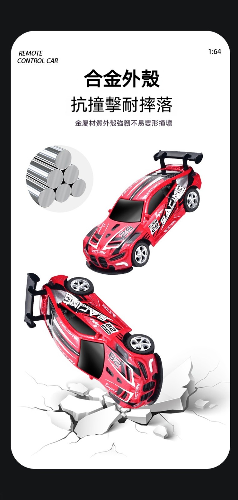 【專業玩家級】1:64 合金迷你遙控車・APP智能操控|三段變速|可甩尾飄移!