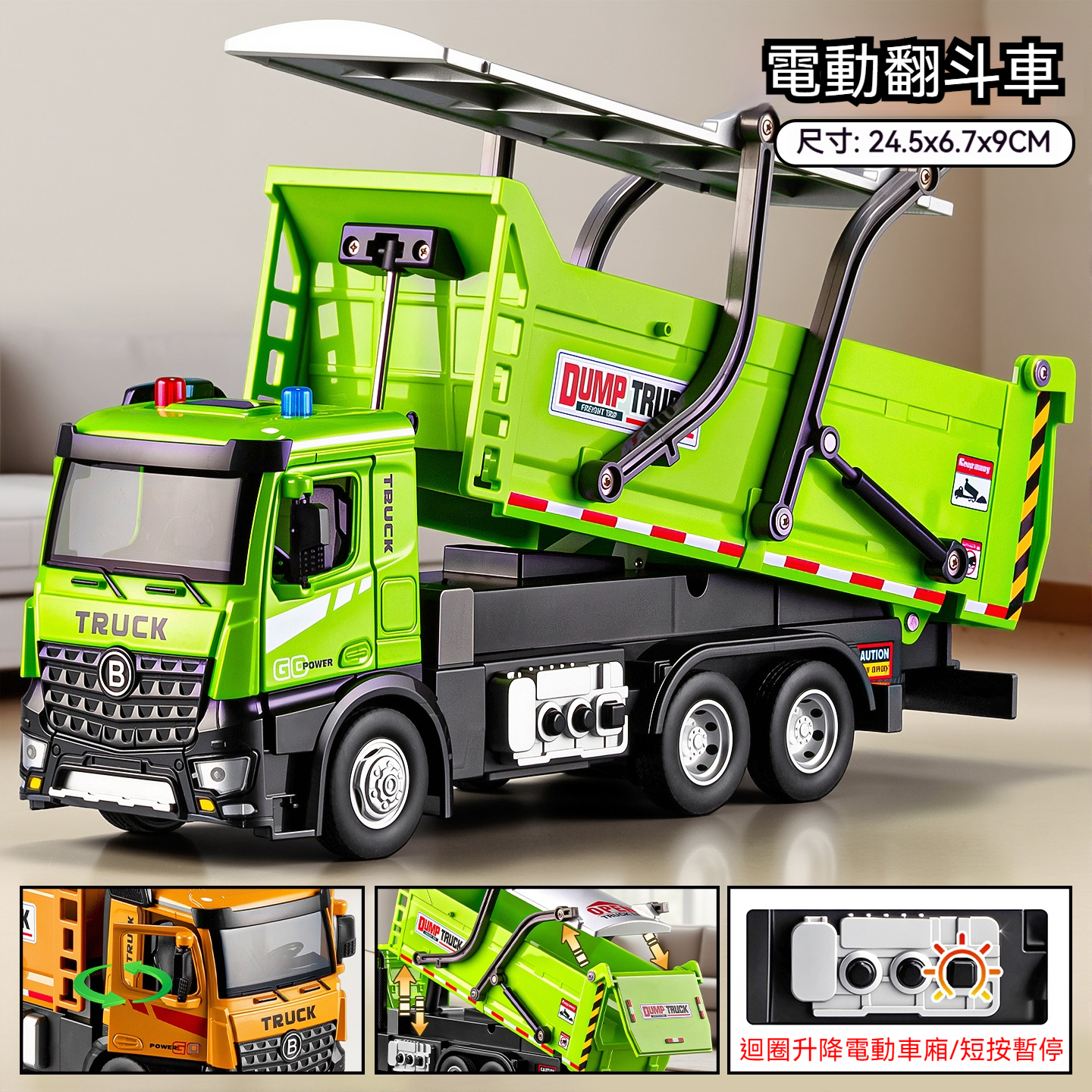 特大號電動合金翻斗車-綠色