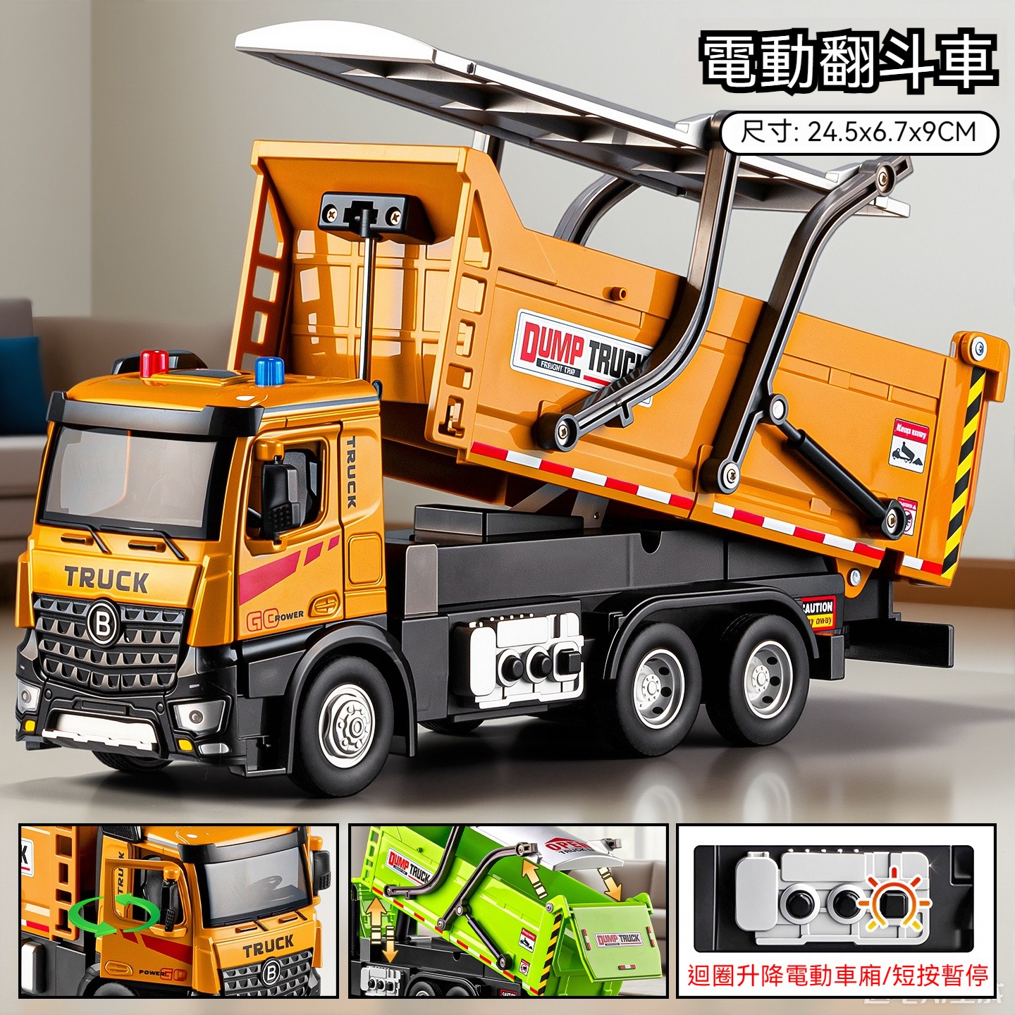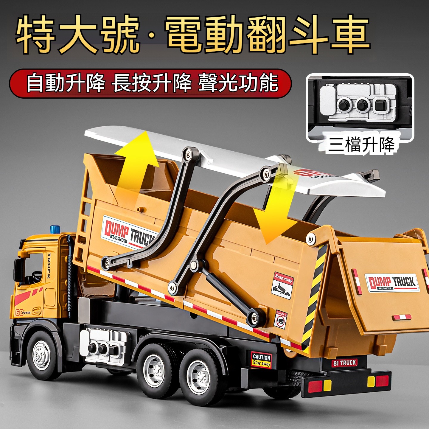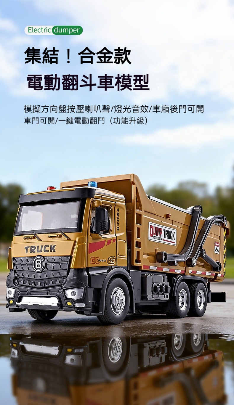 特大號電動合金翻斗車-黃色